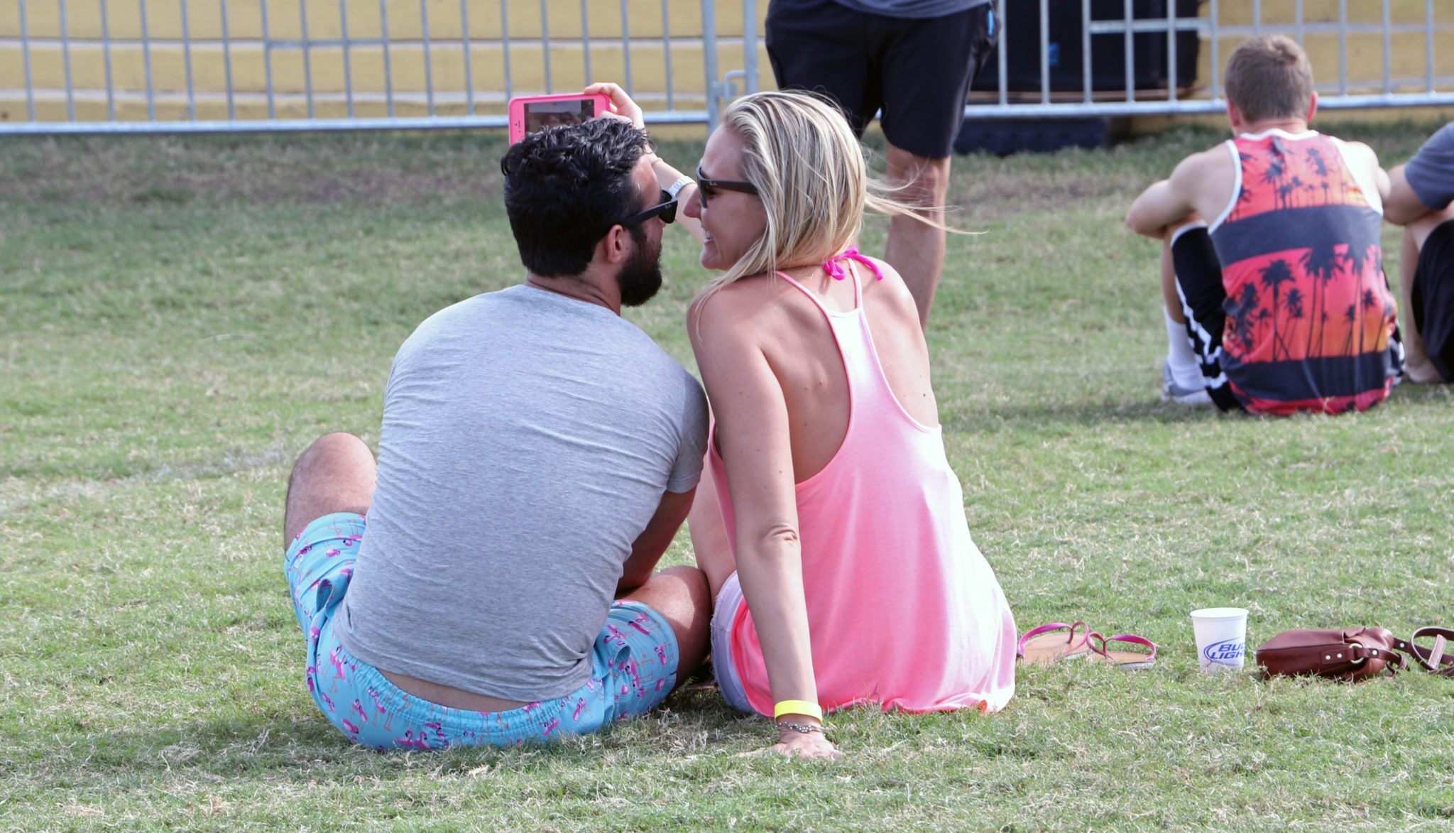 Brett Tobin and Jena Anderson take a selfie while watching the John Bartus play in the amphitheater.