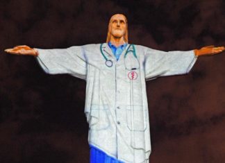 In a tribute to front-line healthcare workers, Brazil’s iconic Cristo Redentor (“Christ the Redeemer”) statue was illuminated to look like a doctor on Easter...