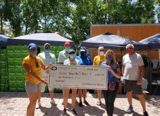 Centennial Bank supported the United Way volunteer operations during its COVID-19 food distributions in May with a check for $1,000. Pictured front left are...