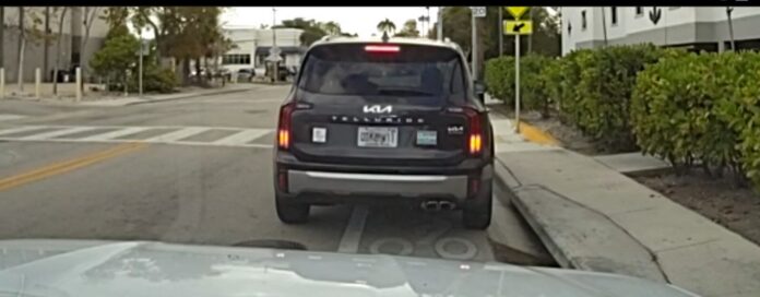 In the video, which lasts less than three minutes, the officer’s patrol car is stopped behind Publix on Northside Drive. Multiple cars and a scooter pass in both directions. Then Kaufman’s Kia Telluride passes, going what looks to be faster than the prior vehicles, prompting the officer to pull onto Northside Drive and activate his lights behind Kaufman’s car, which pulls over immediately near Regal Cinema.