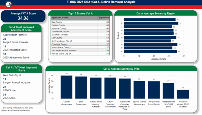 The program is designed to help state, tribal and local governments, as well as certain private non-profit organizations, streamline the public assistance process, identify risks and implement plans to mitigate those risks before disasters strike. Each year, participating jurisdictions complete a Disaster Readiness Assessment (DRA), which evaluates key emergency functions for debris removal (Category A) and emergency protective measures (Category B).