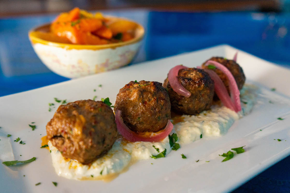 “A couple can come in and order skewers and some fried cauliflower,” he says. “Or, a group can enjoy our spreads, some seared halloumi cheese and beets and labneh. Here at Meze, they can sit down and enjoy different things with our selection of beer and wine.”