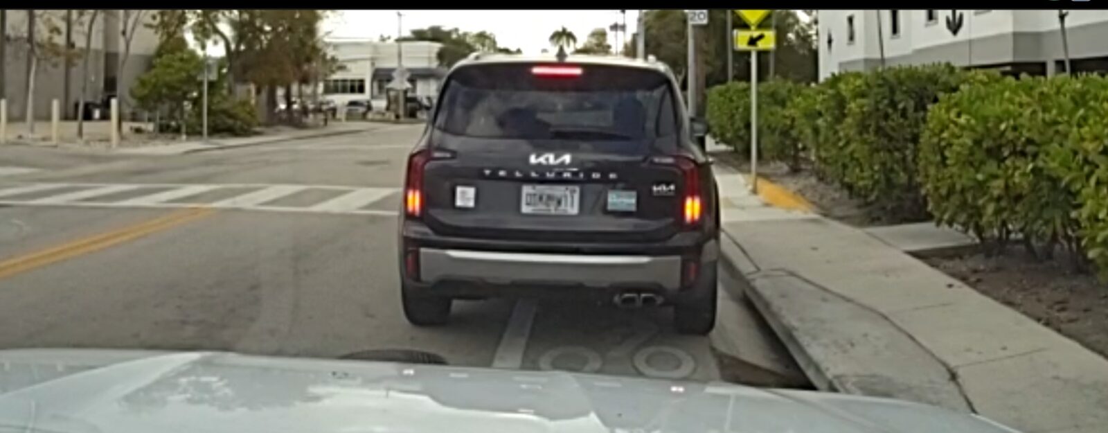 In the video, which lasts less than three minutes, the officer’s patrol car is stopped behind Publix on Northside Drive. Multiple cars and a scooter pass in both directions. Then Kaufman’s Kia Telluride passes, going what looks to be slightly faster than the prior vehicles, prompting the officer to pull onto Northside Drive and activate his lights behind Kaufman’s car, which pulls over immediately near Regal Cinema.