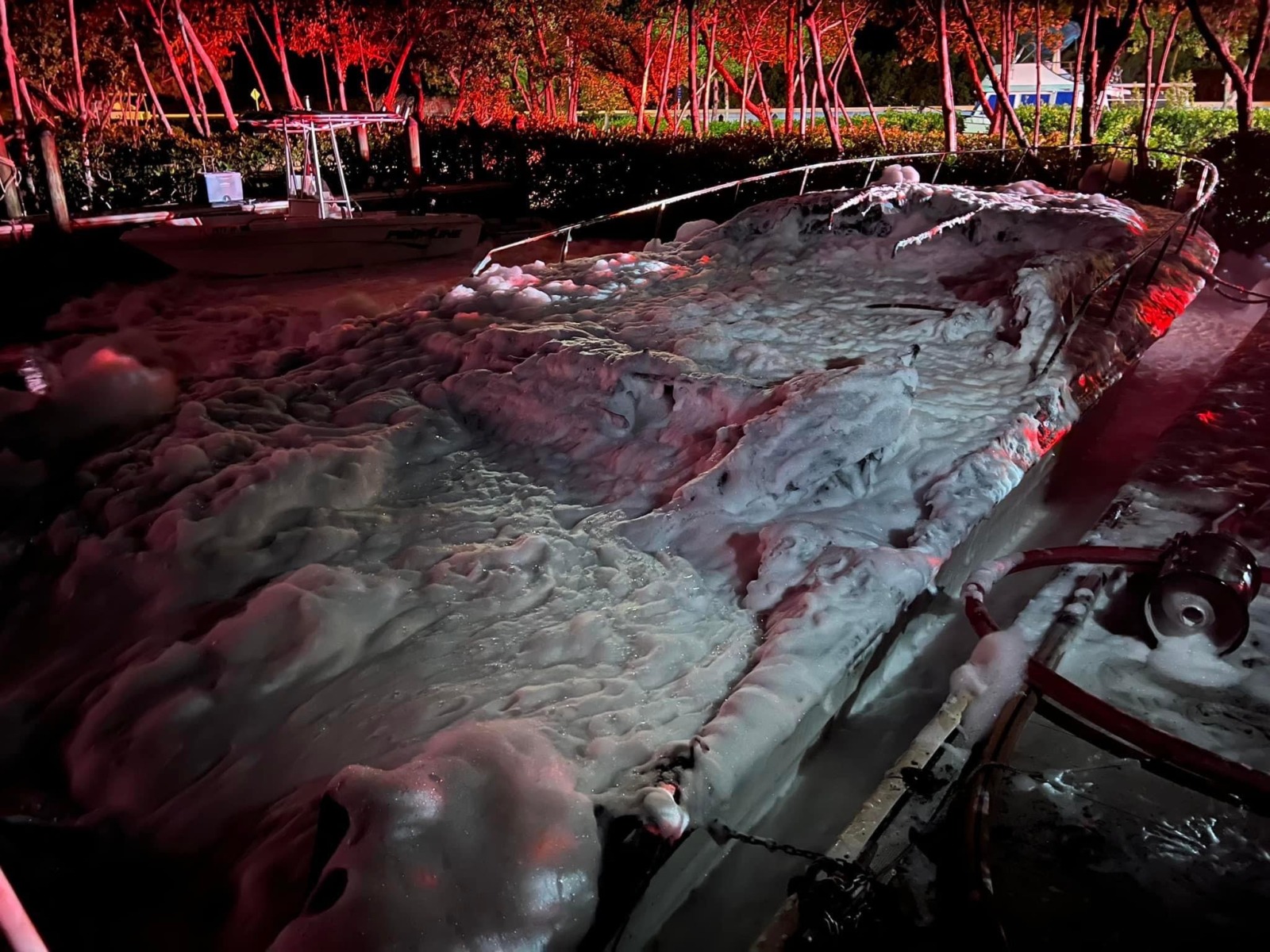 Firefighters rushed to Key Largo’s Manatee Bay Club to witness a 60-foot boat engulfed in flames early Aug. 21.