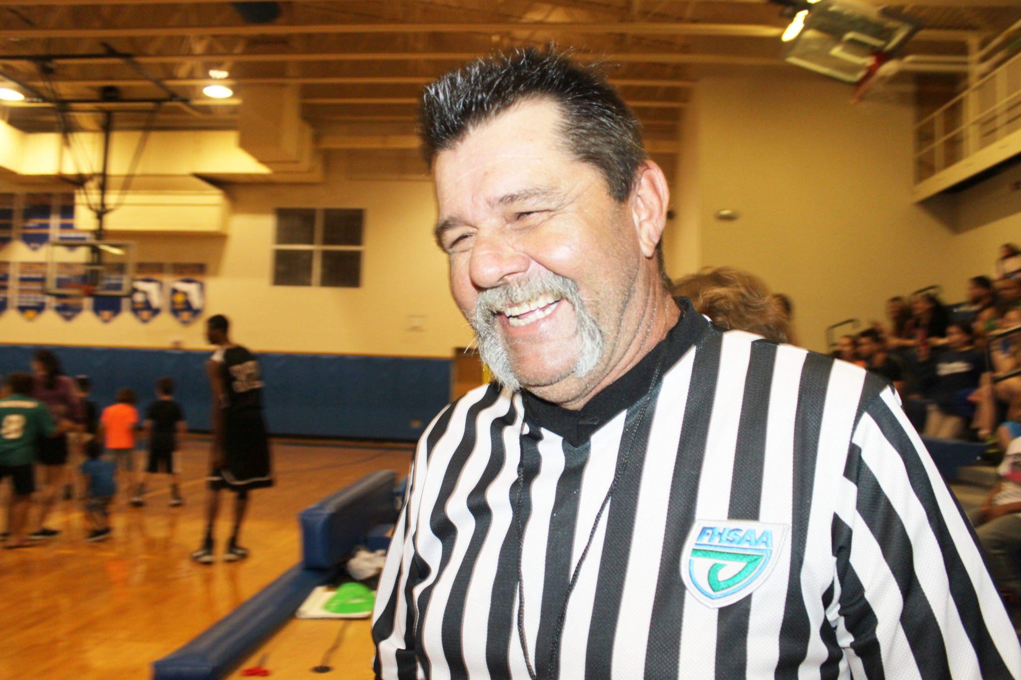 Referee Jon Murphy does his best to keep the flagrant fouls by the visiting team to a minimum.