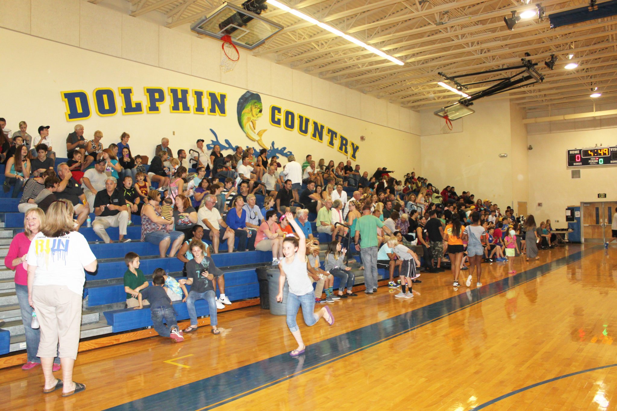 At half-time, the teams invite the crowd onto the court to dance the cha-cha slide.