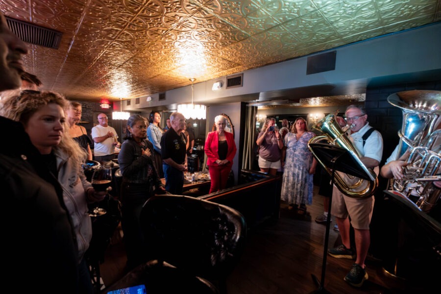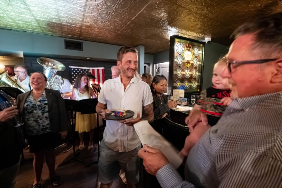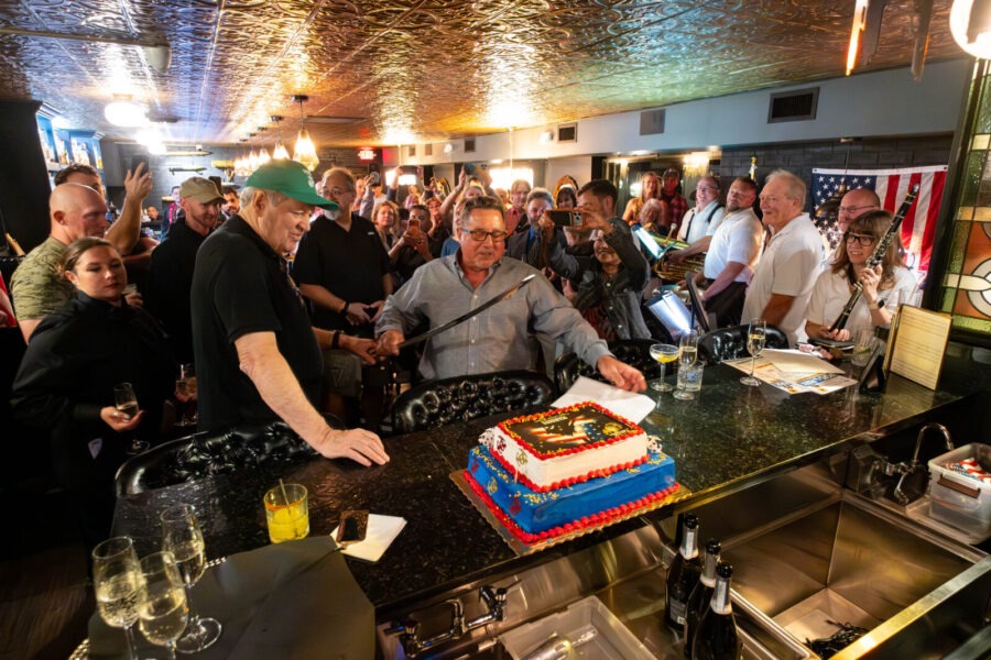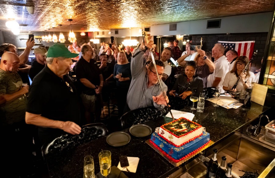 With a sword in hand, VFW Post 10211 quartermaster Mark Birk cut the cake to celebrate 250 years of the U.S. Marines on Nov. 10 at the Armory Speakeasy at the Post in Key Largo. Birk was joined by Dennis Ward, Marine veteran and post commander, and surrounded by fellow Marines and community members. Post 10211’s youngest Marine, Jimmy Cosgrove, was honored with the first piece of cake. The evening included drink specials and tunes from the Keys Community Concert Band.