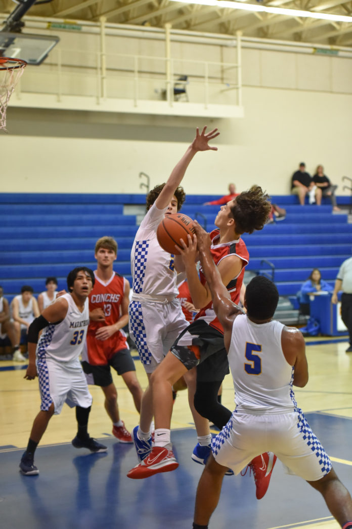 On Jan. 28, rivals reunited as Key West traveled to Marathon for a boys’ basketball showdown. Though Marathon put up a valiant effort, the Dolphins fell to the Conchs, 48-29. “The last time we played Key West, we lost by 40. We lost by 19 this time, so there was some definite improvement,” said head coach Kevin Freeman. “We were happy with the effort and intensity that our team played with.” The Dolphins will look to get back in the win column on Friday, Feb. 4 as they host Coral Shores in another rivalry match.