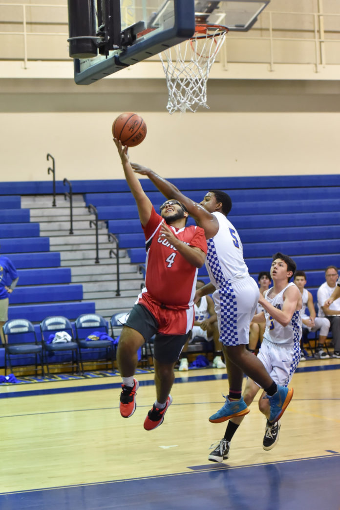 The Fins’ Dom Cruz (5) takes it to the basket.
