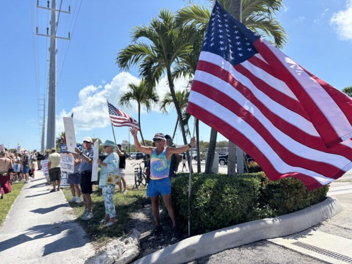 Protesters from the Middle Keys joined estimated crowds of 8 million at 3,300 worldwide events for a third “No Kings” rally on March 28, staging demonstrations against president Donald Trump and his administration’s policies at the corner of Sombrero Beach Road and Overseas Highway.