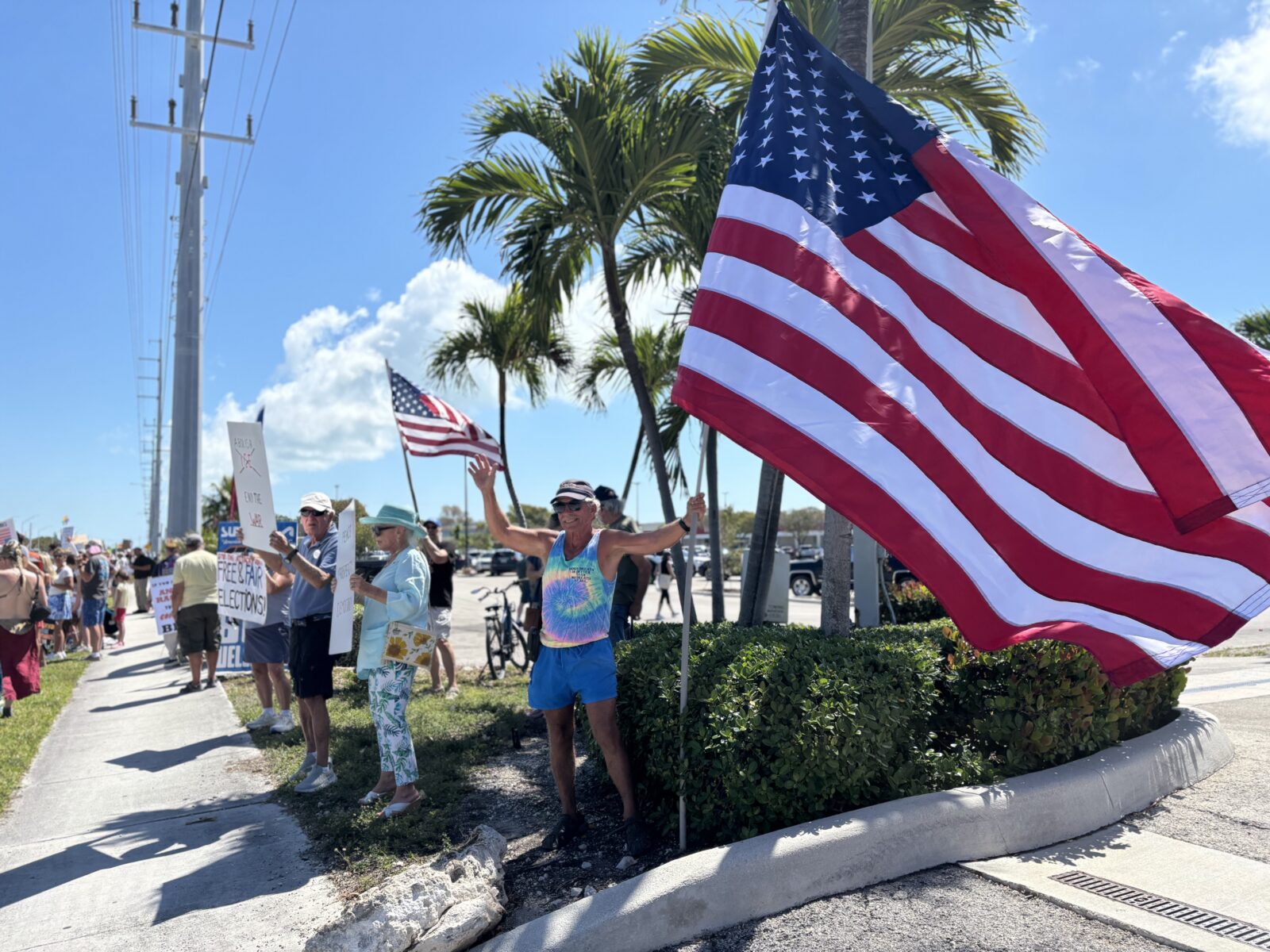 “At the end of the rally, we gathered to pledge our support for the Constitution of the United States of America, share why we made the choice to join the rally and collect money for those whose families have been affected by the detention of family members,” said protest organizer Laurie Swanson, chair of the Mid-Keys Democrats.