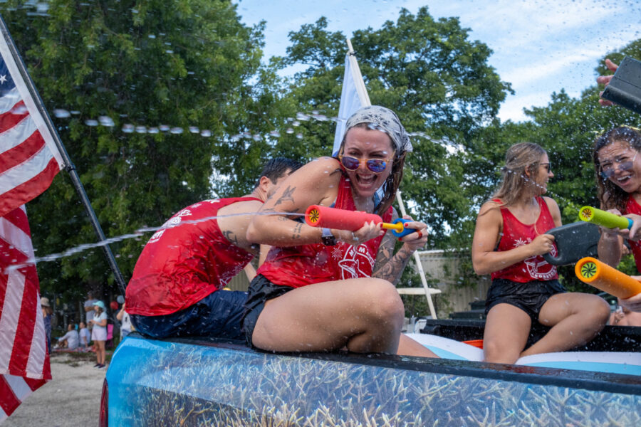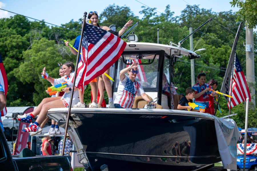 The Upper Keys celebrated Independence Day with a “Celebrating Freedom” parade and a pair of fireworks displays above Florida Bay. Some 100 parade participants dressed in red, white and blue hopped on floats, prepared the water guns and tossed candy to onlookers along U.S. 1 in Key Largo during the morning. By the evening, Rowell’s Park in Key Largo and Founders Park in Islamorada welcomed local residents and visitors to view the fireworks. In Islamorada, the festivities included an apple pie baking contest and red, white and blue parade for the pups.