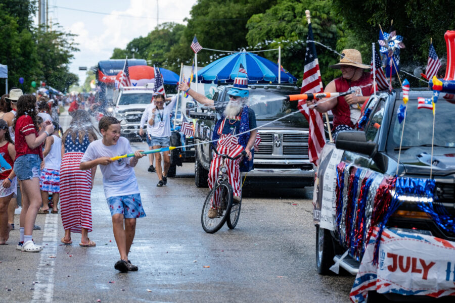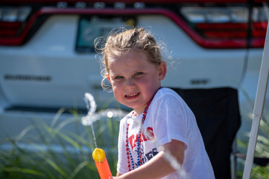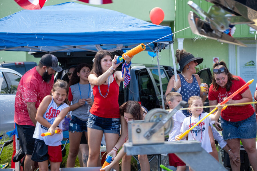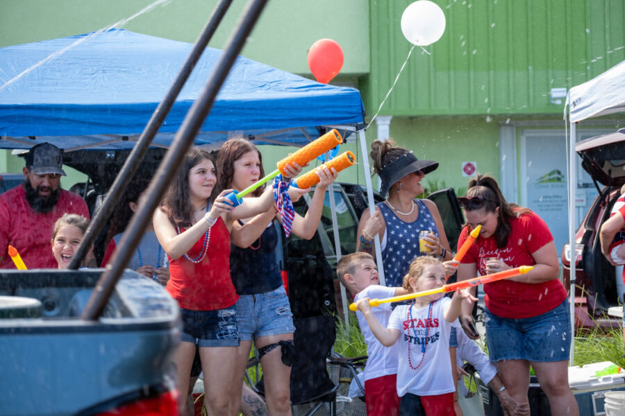 Riley Ensign, 11, fires her water gun during the Key Largo Fourth of July Parade, Tuesday July 4, 2023. Ensign said she’s gunning for the “Prom Queen” and that last year she knocked her tiara off her head with her water gun. Photo by Doug Finger