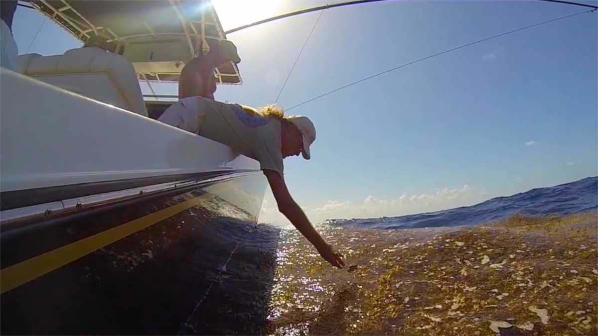 Seven baby loggerhead sea turtles rehabilitated at the Turtle Hospital were strong and ready for release to their ocean home. Richie Moretti, founder and director of the Turtle Hospital ran his boat 35 miles offshore in search of a patch of sargassum weed, a haven to release the sea turtle hatchlings. No sargassum weed was to be found. A week later, there was still no reports from local fishermen of sargassum weed offshore. Richie turned to the team at the Marathon Airport for some help last week. Florida Keys Flight Academy provided an airplane, Marathon General Aviation supplied the fuel and pilot Cristhyan Martinez donated his time to fly Richie offshore of Marathon on October 31st. From the air they closely surveyed the Atlantic ocean offshore of Marathon and spotted a healthy patch of sargassum weed! Upon landing at Marathon Airport, Richie rushed to beat the sundown and took the 7 baby sea turtles out on his boat to release them into the patch of sargassum weed. These were the last babies of the season to be released.