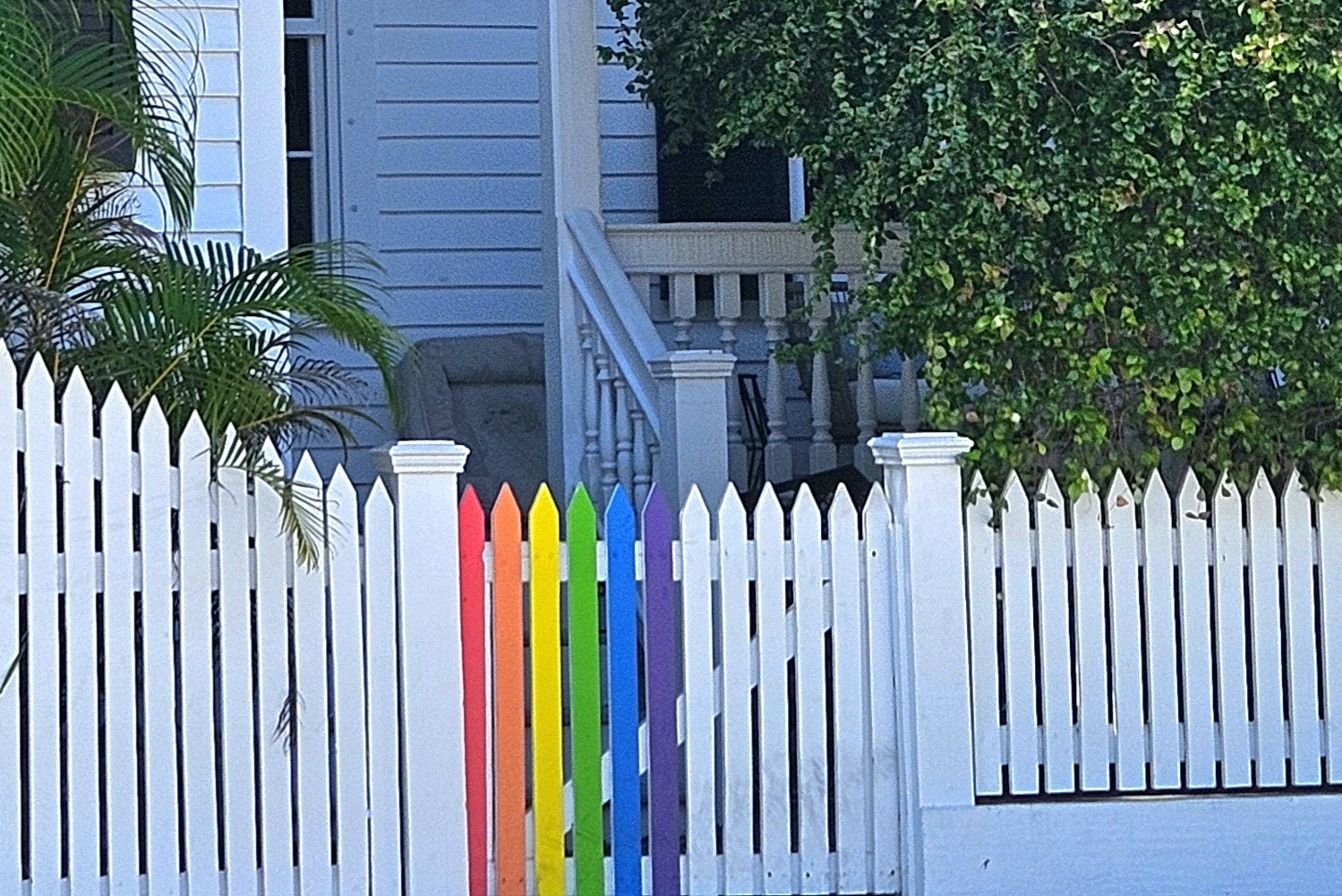 After the city commission voted not to stand up to the state’s crosswalk removal mandate, several homeowners began painting seven or so pickets of their fences in rainbow colors. The rainbow renaissance appeared on fences from Bahama Village to Flagler Avenue.