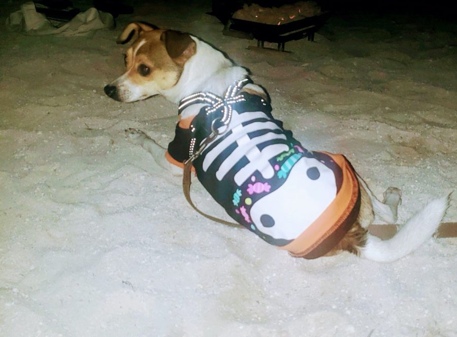 Dragons, dinosaurs and everything in between were welcome at the Mask-querade event at Truman Waterfront. PAUL MENTA/ContributedThe children’s song was running through everyone’s head, “Baby shark, do do do-do do do…’ upon seeing this trio at the inaugural Mom & Pop Key West Mask-querade event on Halloween. PAUL MENTA/ContributedThe Key West High School Conchettes dance team entertains the crowd at the Mom & Pop Key West Mask-querade event. PAUL MENTA/ContributedRoux, the skeleton dog, took Halloween in stride during an informal Halloween gathering at Higgs Beach with owners Erin and Caroline Stover Sickmen. ERIN STOVER SICKMEN/Keys WeeklyNancy Curran prepares to fly away on her broomstick at Higgs Beach on Halloween. ERIN STOVER SICKMEN/Keys WeeklyA hot dog eating a hot dog? Only at Halloween. Erin Stover Sickmen enjoys a Halloween cookout with friends at Higgs Beach. CAROLINE STOVER SICKMEN/Contributed