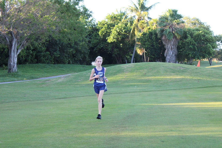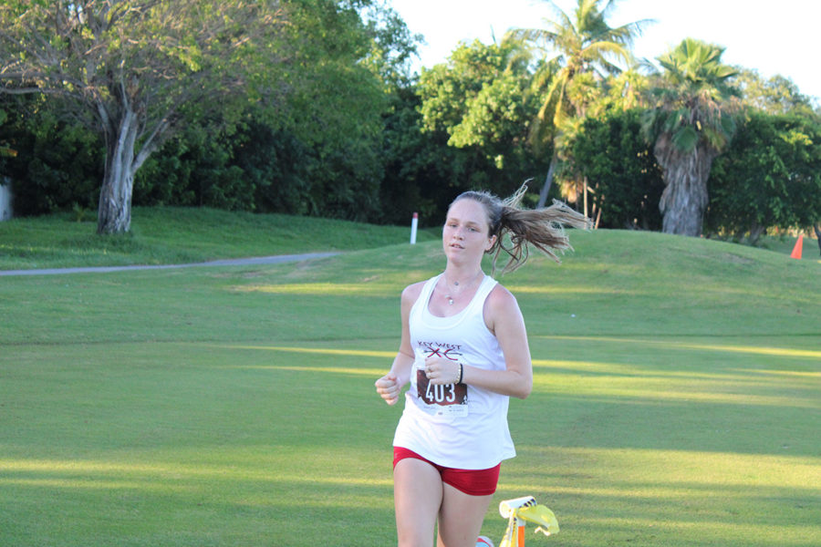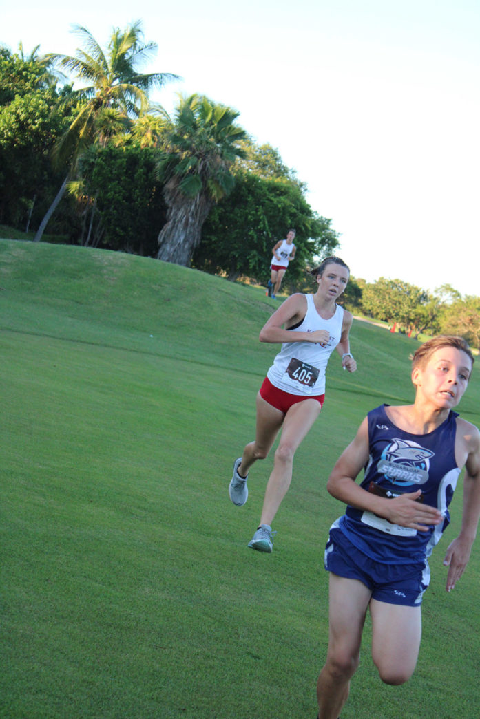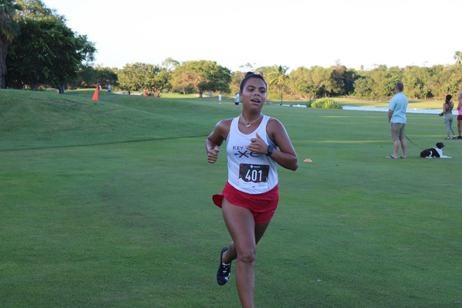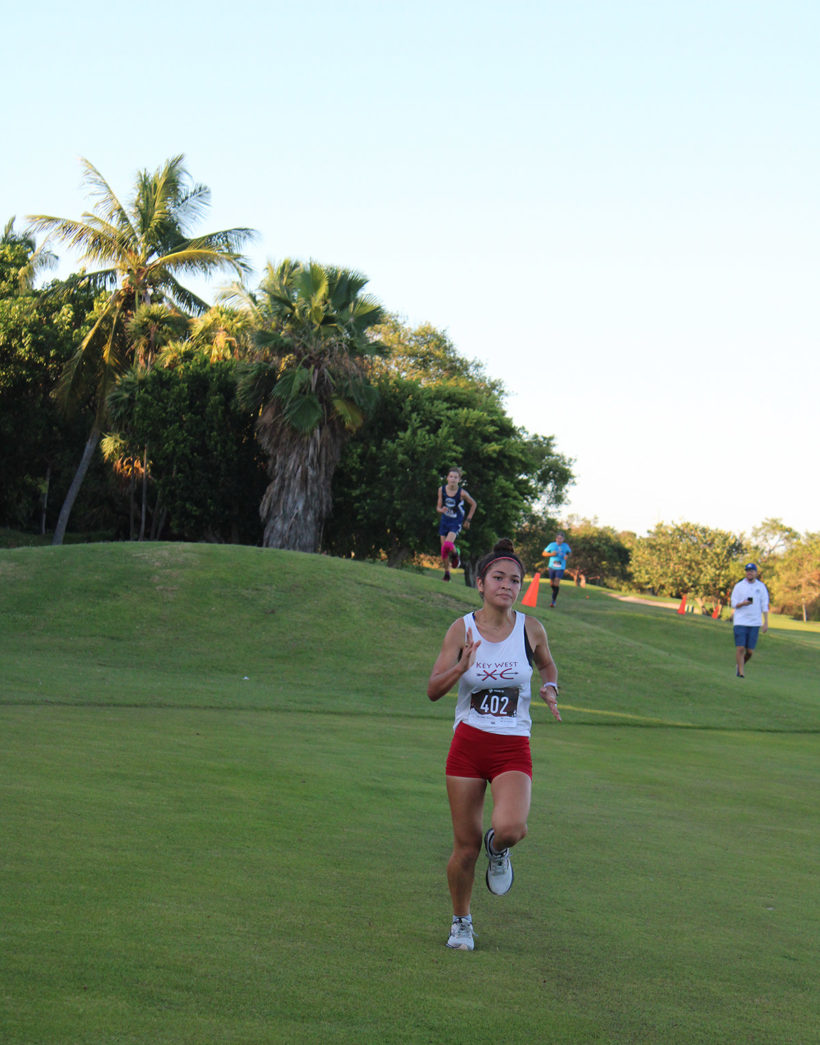 Finishing first for the girls was Caylaa Makimaa in 22 minutes, nearly a minute faster than she ran earlier in the week on Marathon’s fast-paced flat course. She was followed by Naima Thomas in second and Gianna Marchant in third. Girls coach Keara McGraw was very happy with the performance of her team, noting that they have all improved tremendously this season and are running their best when it is most crucial. She said her girls’ battle cry all week was “48 hills,” a nod to the number of inclines on the tough two-loop course. Hill training is hard to come by in the flat Florida Keys, but McGraw and Coleman have been creative this season, adding bridges and Fort Zach runs to their teams’ repertoire in order to prepare.