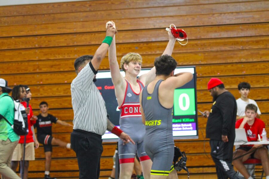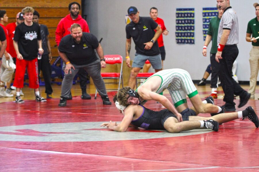 In addition to the team title, the Conchs saw a pair of individuals crowned with district titles. Michael Guzman (165 pounds) defeated two opponents via technical fall, piling on the points on his way to the podium. Allens Alexandre made short work of his final opponent, pinning him in under 30 seconds for district gold.