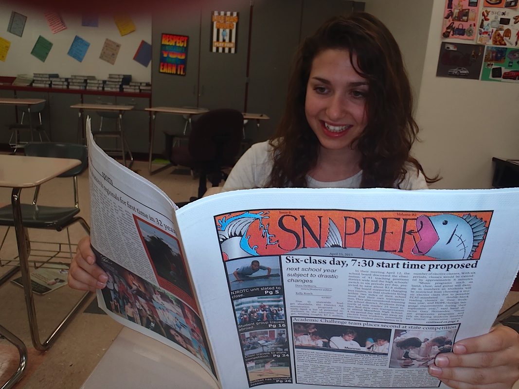 Clubs and Activities: editor in chief of The Snapper, marching band, special effects coordinator, historian of Z Club, NHS, executive board, Relay For Life captain