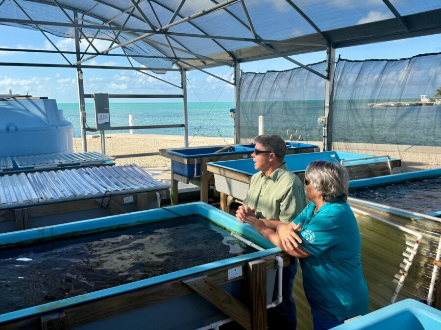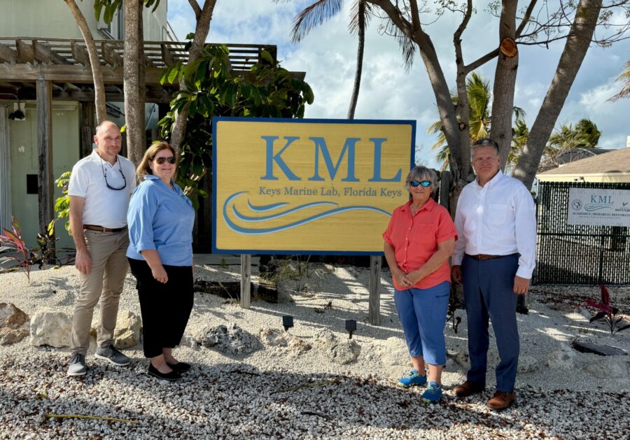 Keys Marine Laboratory (KML) recently held high-profile visits to discuss research, education, reef restoration and land-based seawater systems that support restoration partners in the Florida Keys.