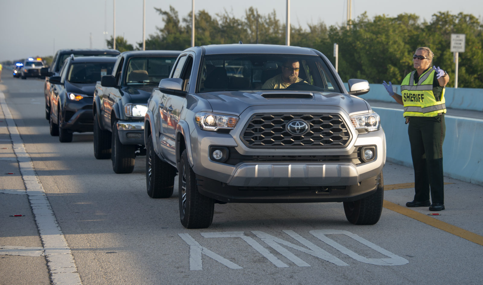 By 7:30 a.m. on Friday, March 27, the Monroe County Sheriff’s Office and Florida Highway Patrol had established two checkpoints: one on the 18-Mile Stretch on US 1 and the other on Card Sound Road, near Key Largo. The checkpoints are purposely located inside the Keys, so as not to cause traffic jams in Florida City.