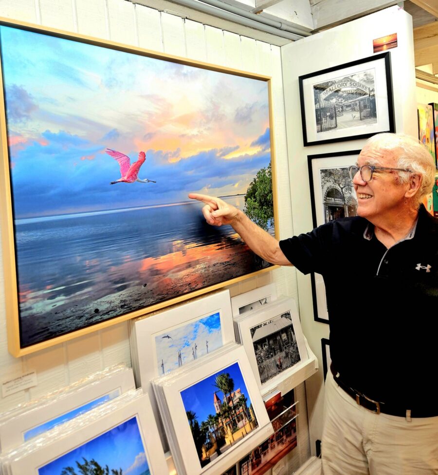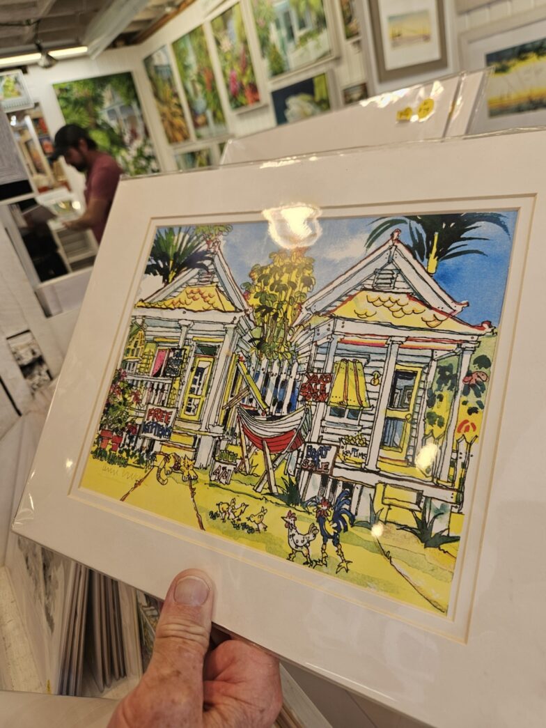It’s what I felt upon entering the gallery and being instantly immersed in all the best parts of Key West, captured in oil paints, watercolors, photography, handmade coastal-themed jewelry and so much more. There are sunsets, wildlife, shockingly bright colors like the roseate spoonbill in Jack Loudon’s award-winning photography, and lush tropical abundance that surrounds Lynn Fischer’s paintings of Key West cottages.