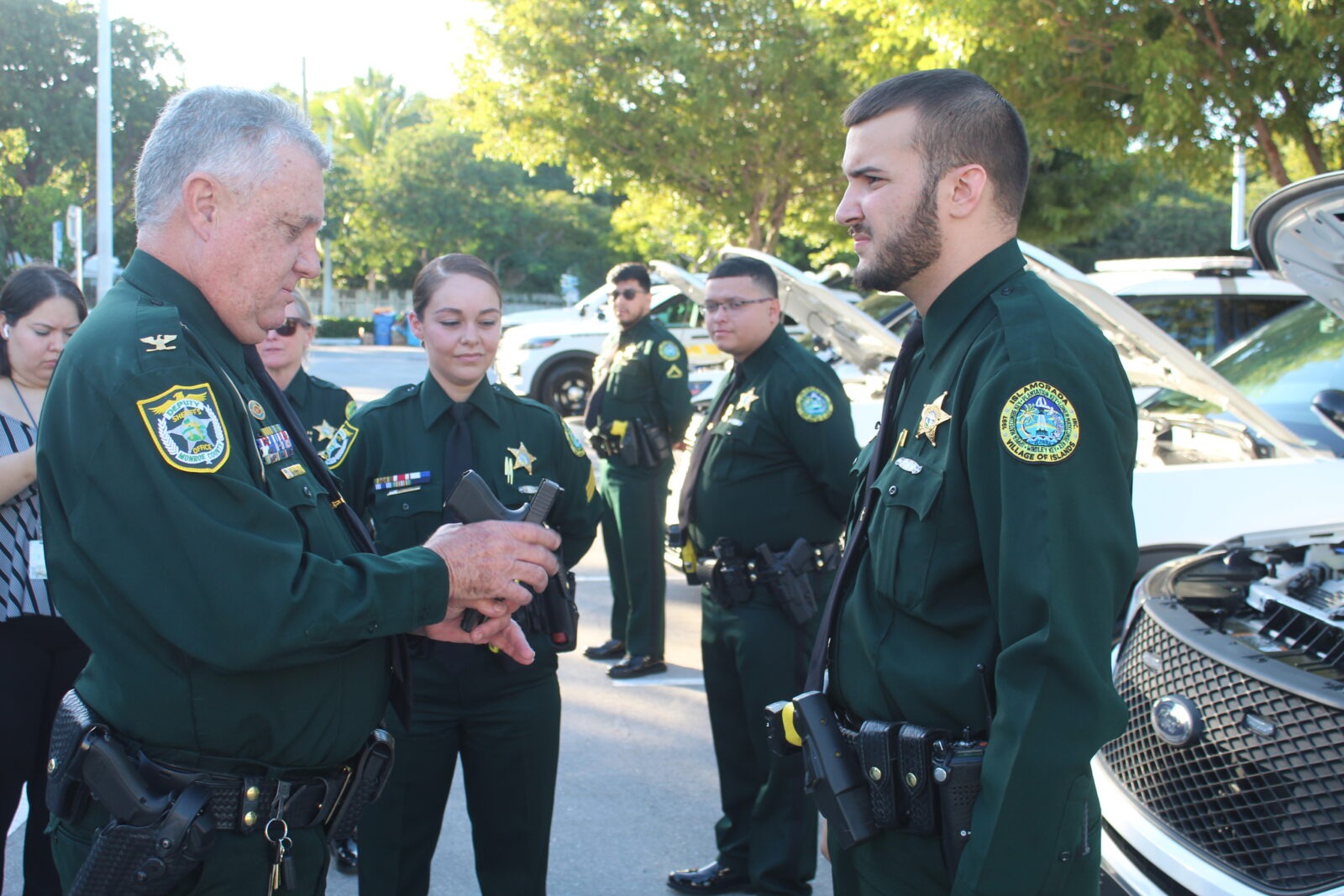 Monroe County Sheriff’s deputies and investigators in the Ocean Reef, Key Largo and Islamorada districts convened at the parking lot near the old Plantation Key Courthouse for annual inspection on Jan. 6. Deputies and investigators stood next to their vehicles as Undersheriff Chad Scibilia inspected uniforms, vehicles and firearms. Scibilia questioned each deputy on the sheriff’s office’s motto, to which they replied honesty, professionalism and commitment to community.