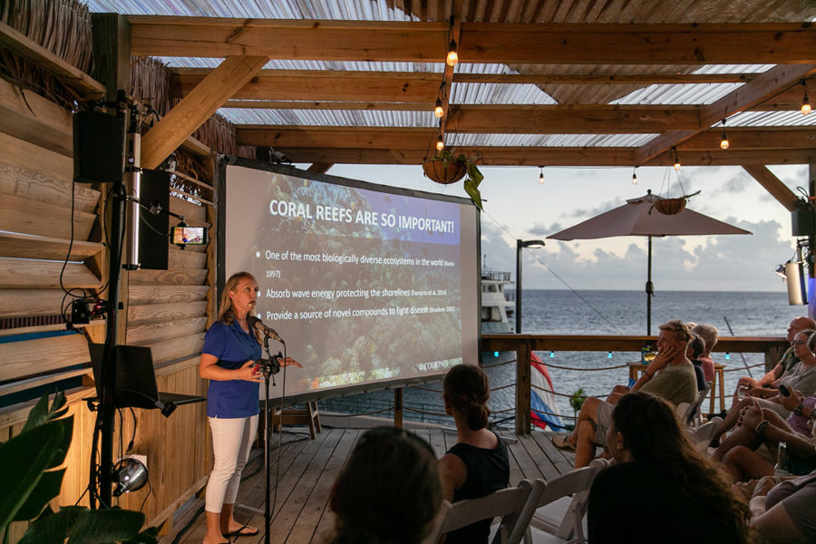 Additionally, the public talks are hosted at local bars and restaurants during happy hour. That way, visitors to the island can join without missing any diving or dining opportunities and locals can come after work, said Sea & Learn founder Lynn Costenaro. “It’s not meant to be a classroom,” she added. “It’s a win-win-win for the community, the scientists and the local economy.”