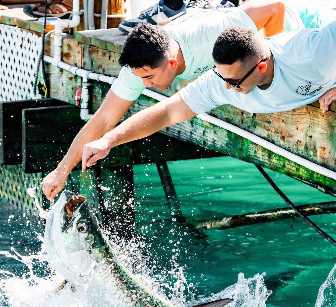 It was Robbie, too, who rescued a tarpon struggling near the mangroves at the edge of the marina, scooped the fish up in a net, and discovered that its jaw was detached.