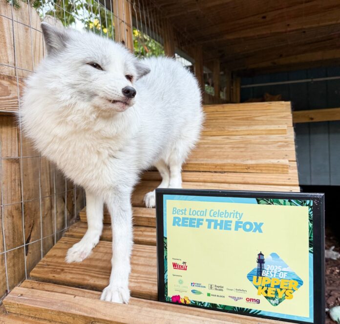 Hi friends, Reef the fox here with your weekly “Reef’s Report.” Well, would you look at that. Your boy Reef has done it again. For the fourth year in a row, I’ve been voted Best Local Celebrity in the Upper Keys.