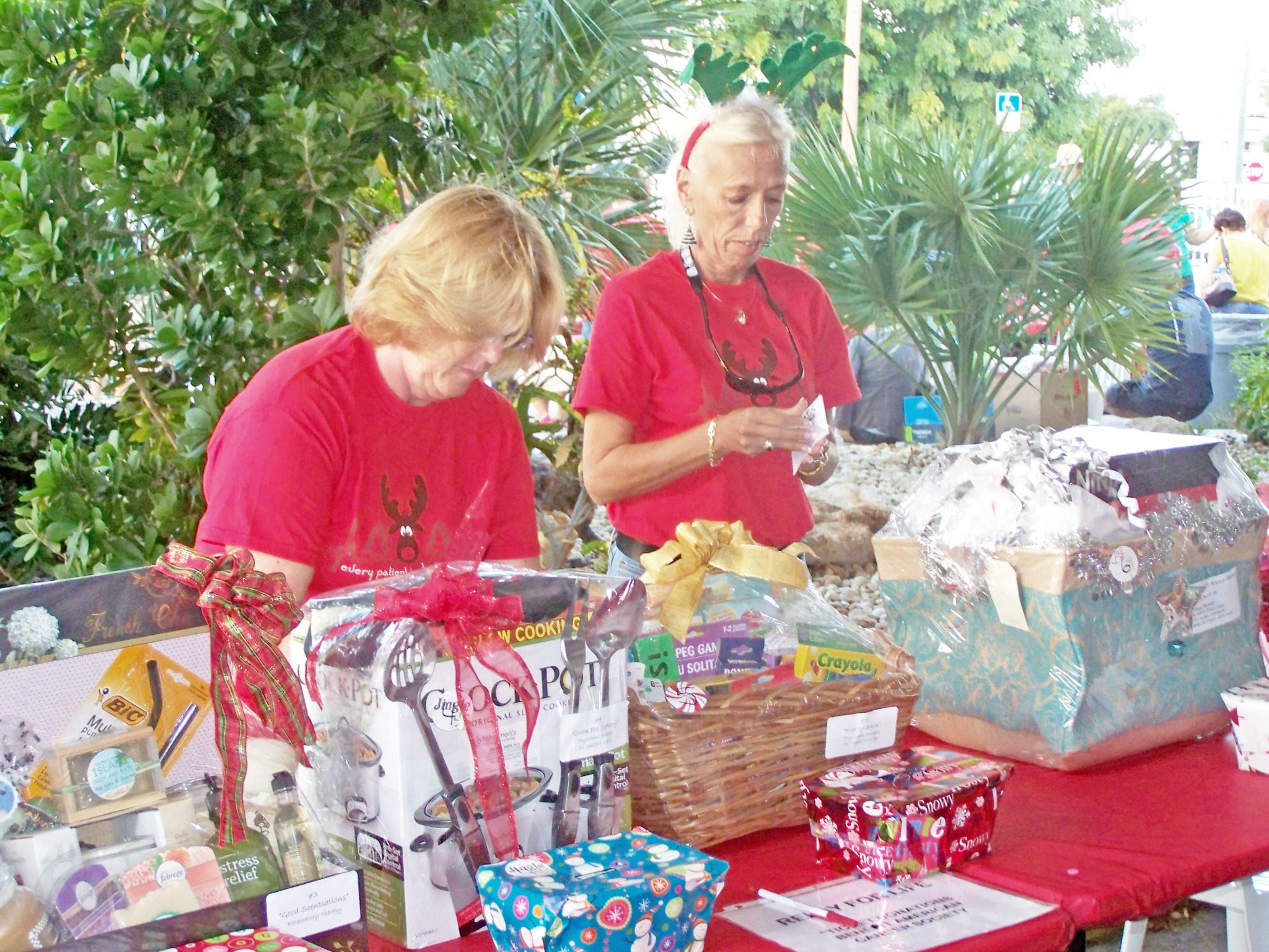 Relay for Life volunteers Maureen Holland and Cindy Widmaier sell raffle tickets to win gift baskets. Both ladies work at the hospital: Maureen is the RN house supervisor and Cindy is a radiation tech.