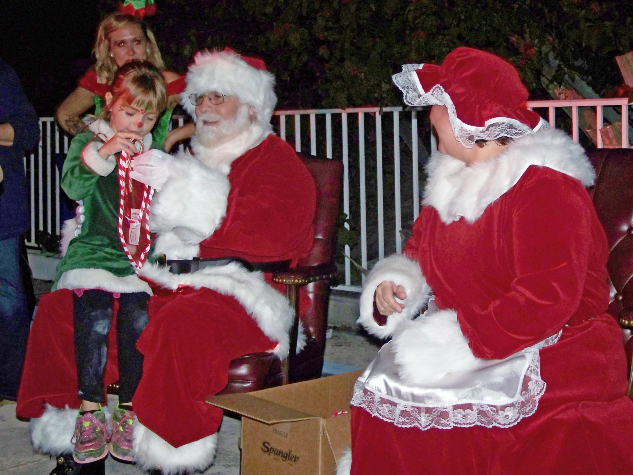 Lera Myrup receives an early Christmas present after a visit with Mr. and Mrs. Claus (Barbara Martell, an OR tech, and her real-life husband Russ Martell).
