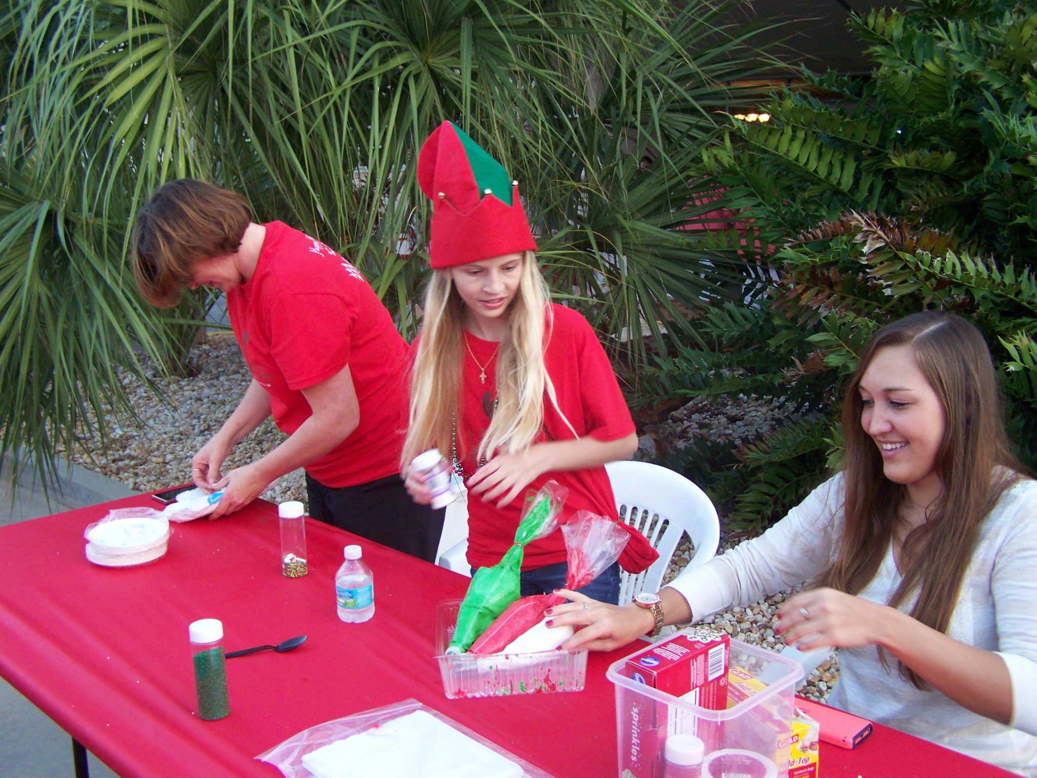 The cookie-decorating table is always fully staffed. (Why is that?) Rhonda Bezanis, admitting supervisor, Genna Town, daughter of JeriLyn Town, and ER nurse supervisor, and Elisa Davis, RN, are hard at work.