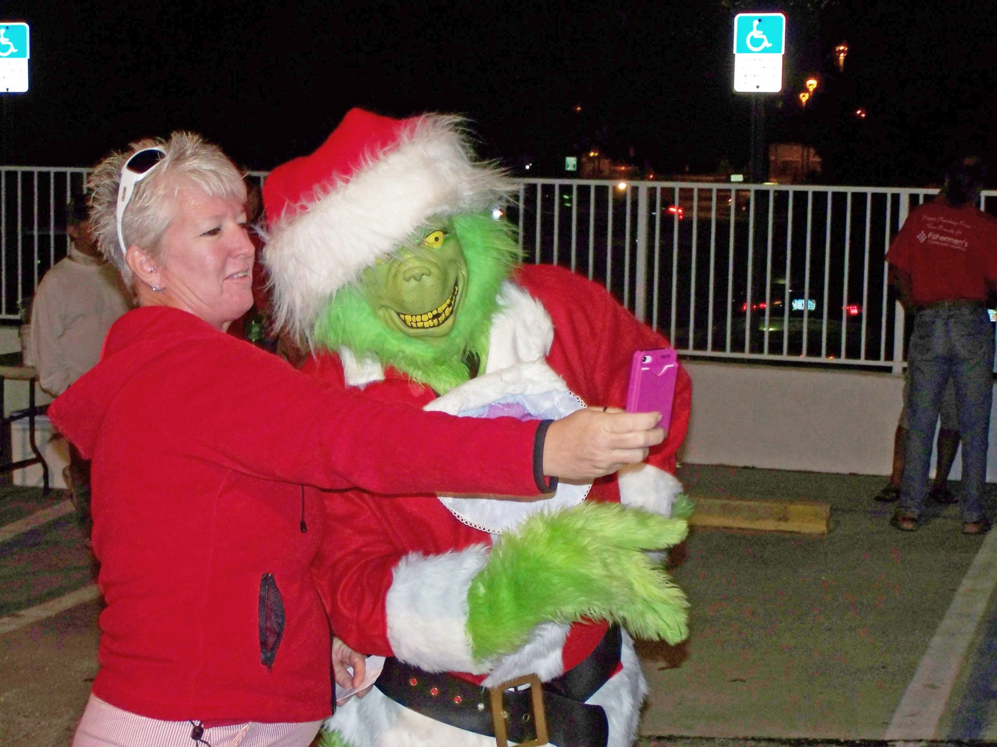 Grinch selfie! Jody Randle, OneBlood donor recruiter, snaps a shot with The Man in Green, otherwise known as Monroe County Sheriff Lou Caputo.