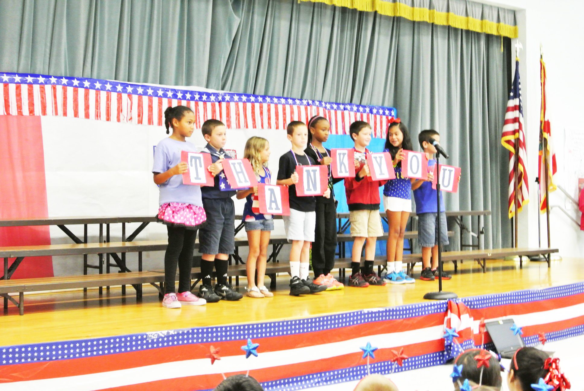 Students and staff at Switlik School celebrate the annual Red White, and Blue Day on Friday to honor veterans and service personnel with poems, songs and essays. Pictured is Mrs. Meier’s first grade class.