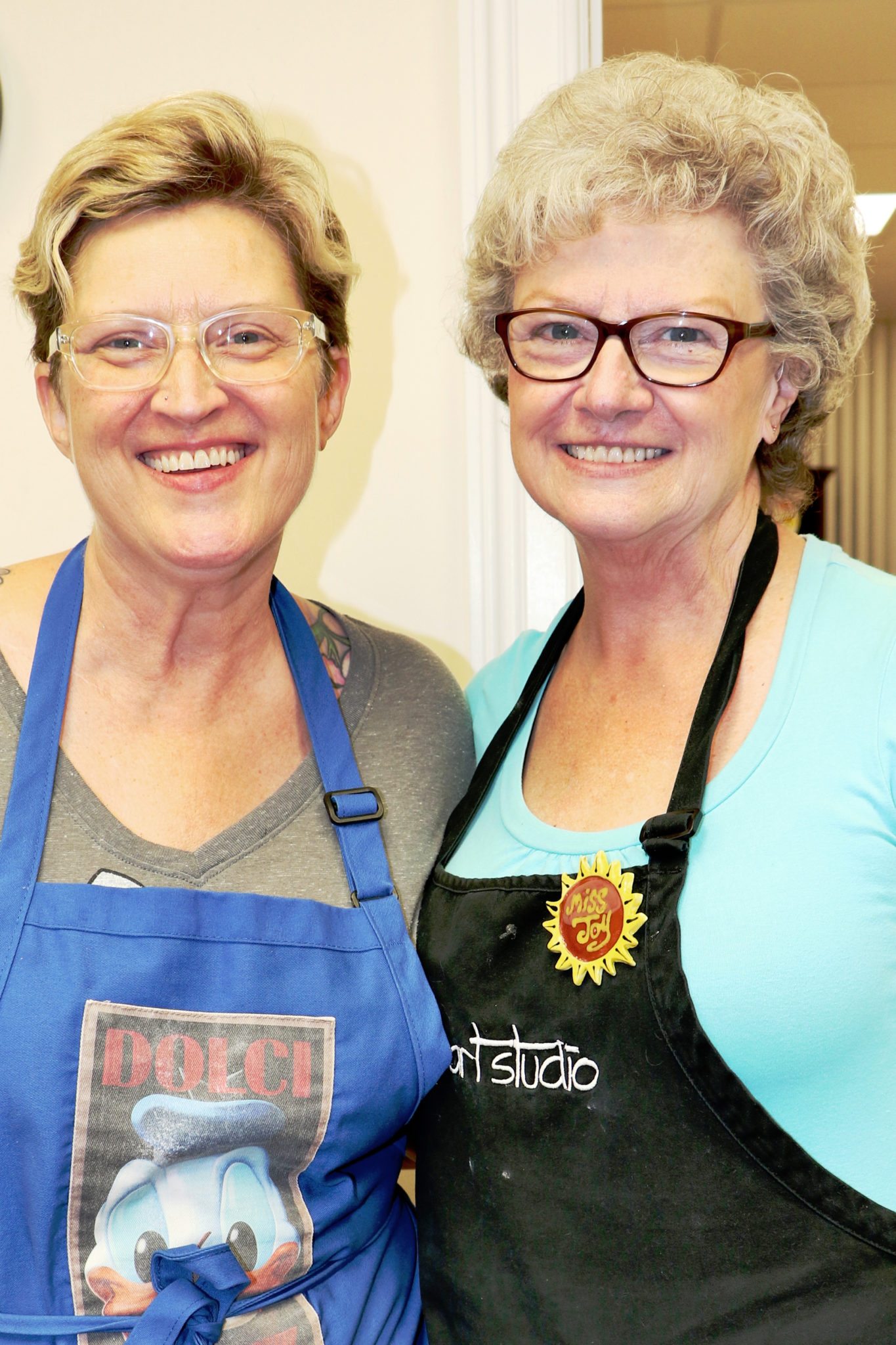 Art Studio Owner Shelia Cook donates all the proceeds from the hat and headband making to the Fishermen’s Hospital Foundation. She is seen here with her mom, Joy Elledge.