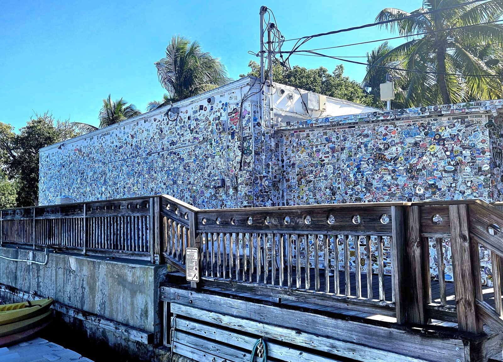 Long known as Shrimp Boat Sound, the boxy little windowless building that’s covered with stickers sits along Key West’s Harbor Walk, between Schooner Wharf Bar and the Conch Republic Seafood Co.