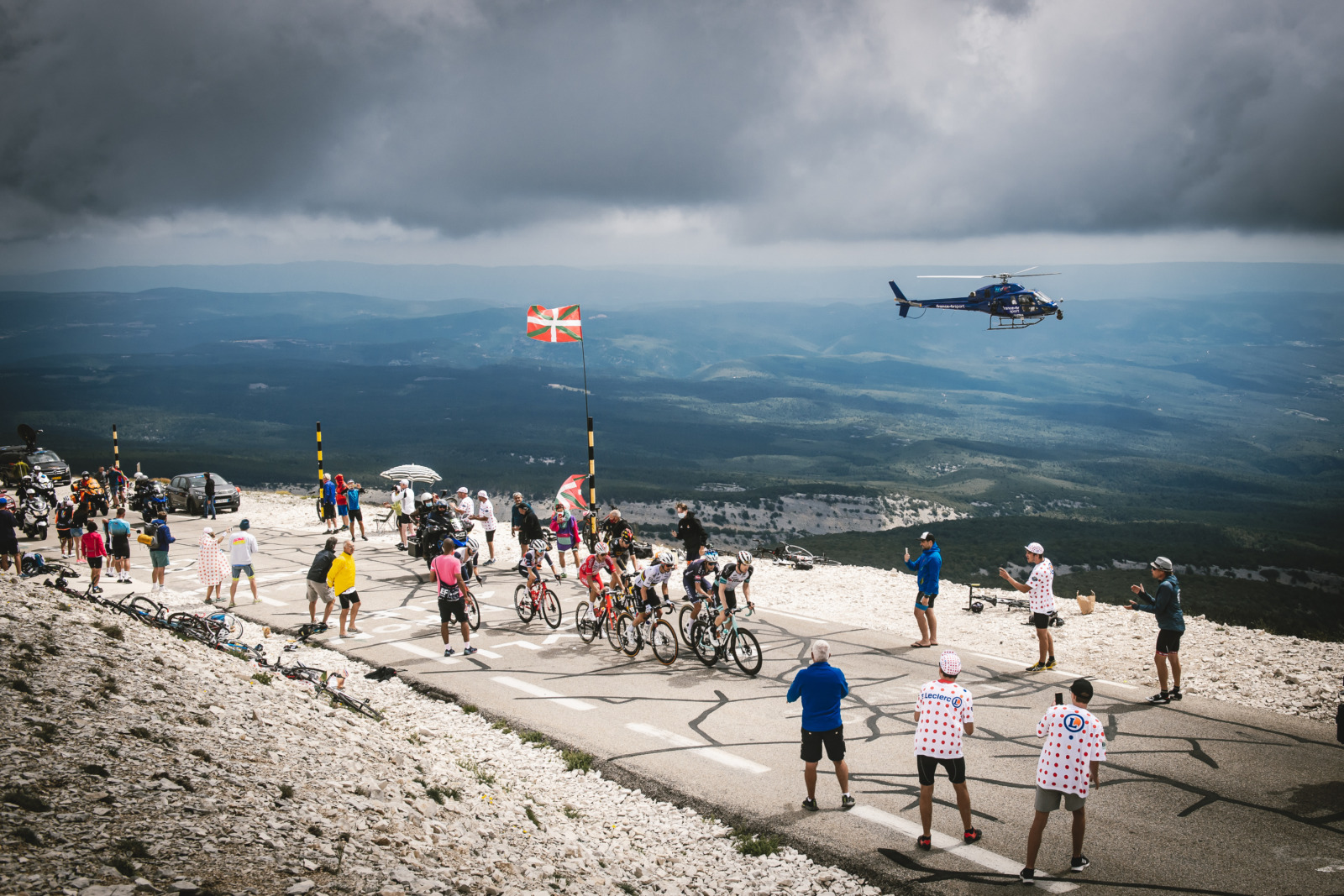 Over the 21 stages and roughly 2,100 miles of the Tour, the helicopters provide a kind of visual omniscience to the race. Sometimes you feel like an angel or some other celestial being hovering over the shoulders of the riders. You can watch a rider working from slipstream to slipstream to the front of the race, throwing everything they have at the pedals to win the final sprint. You can watch a crash spread from one rider to 50, the chaos ripping through the peloton like a wave. You can watch the peloton bunch up when moving slowly, string out when moving quickly.