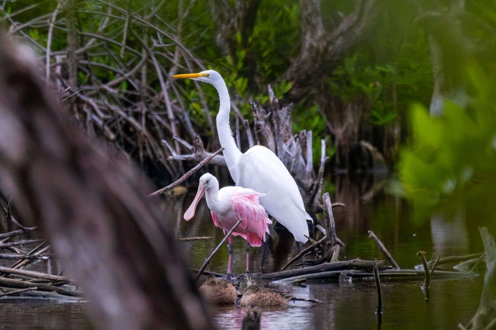 The Everglades and Florida Bay used to be a stronghold for breeding roseate spoonbills, but over the last several decades their numbers have begun to decline in the region. In the late 1980s, there were thought to be up to 900 nesting pairs in Florida Bay. By 2021, the number was down to 157. This is largely thought to be the result of climate change, but also due to changes in hydrology in the Everglades.