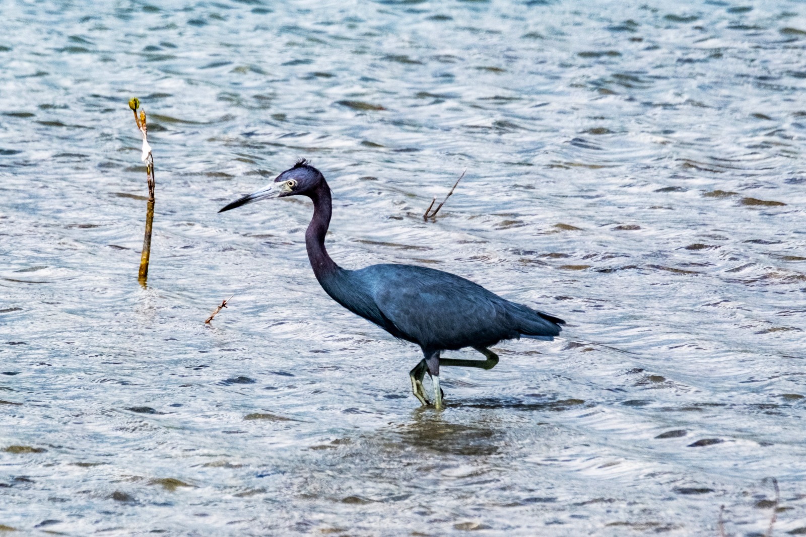 Little blue herons are pretty common throughout the eastern half of the U.S. We have them in the Keys, though seemingly in lower numbers than other wading bird species. If I drive down, say, Blimp Road on Cudjoe, or the road through Middle Torch and Big Torch, I tend to see small flocks of 10 to 30 snowy egrets and tricolored herons. Little blues I tend to see one or two at a time.