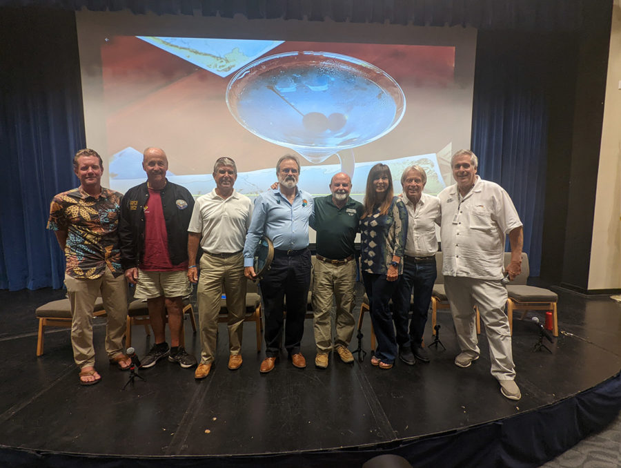Storytime began with renowned underwater photographer Stephen Frink reviewing the history in pictures. He and other panelists of the night were there when the idea to sink a really big ship was hatched at Sharkeys. It would be a world-class dive destination and the largest vessel ever deliberately sunk to become an artificial reef, they hoped. They persisted through nine years of permitting, forms, permissions and environmental tests.